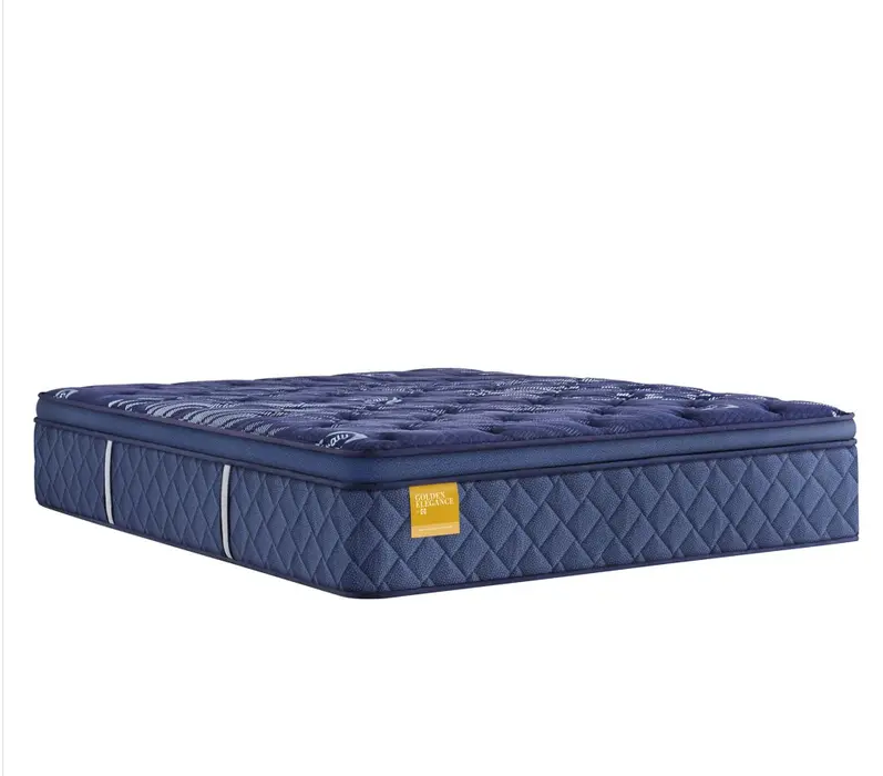 Indulge in plush luxury with the Sealy® Golden Elegance Plush Pillow Top Mattress. This mattress includes SealyStability™ Plus Coils for responsive support, complemented by SealyComfort™ Gel Memory Foam and SealyComfort™ Air Foam for ultimate comfort. The knit cover, enhanced with MoistureProtect™ and Surface-Guard Technology™, ensures a cool and clean sleep environment. The pillow-top design provides cloud-like softness, delivering a truly restorative sleep experience. 10-Year Limited Manufacturer’s Warranty.